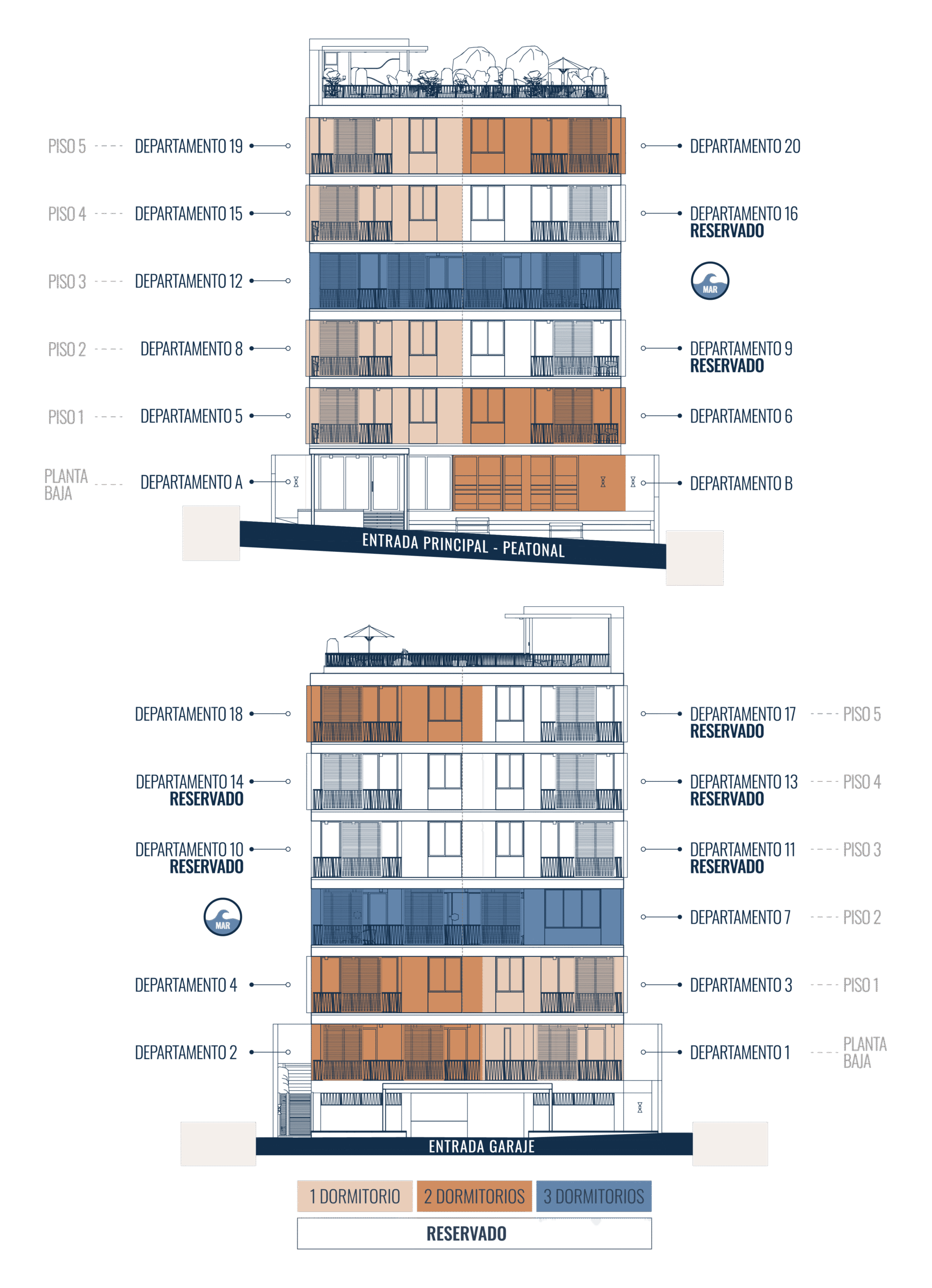 Departamentos exclusivos de 1, 2 y 3 dormitorios con vista al mar.